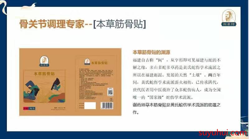 謝藥師本草筋骨貼是黃氏蛇傷學術(shù)流派的底蘊之作。