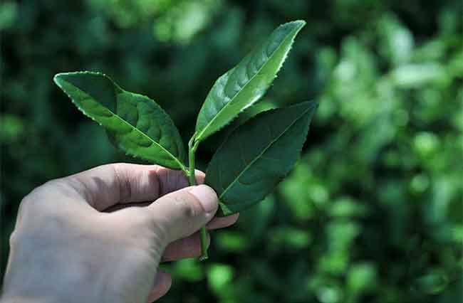 鐵觀音的采摘要求是,兩葉一心(如下圖所示)。當(dāng)鮮葉長到三四葉,頂芽停止生長時采摘。這樣葉子比較成熟且不太老做出來的茶比較好,內(nèi)質(zhì)成分豐富,葉子有有一定的硬度,也便于搖青。當(dāng)然,所有葉子生長不可能都一致,有些頂部還有芽,有要求高的,會把頂芽采掉,再采下邊的成熟葉。