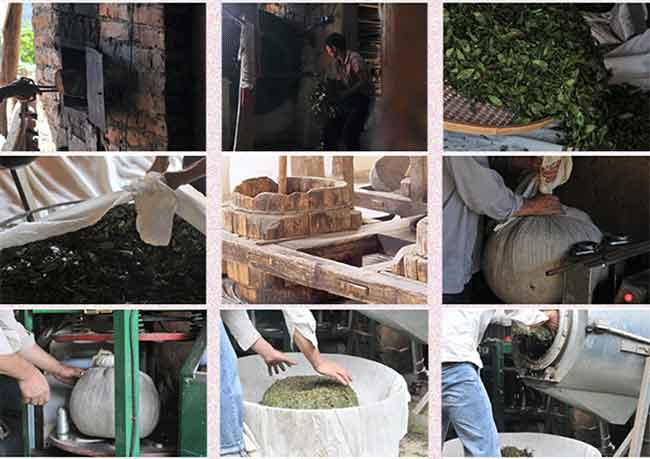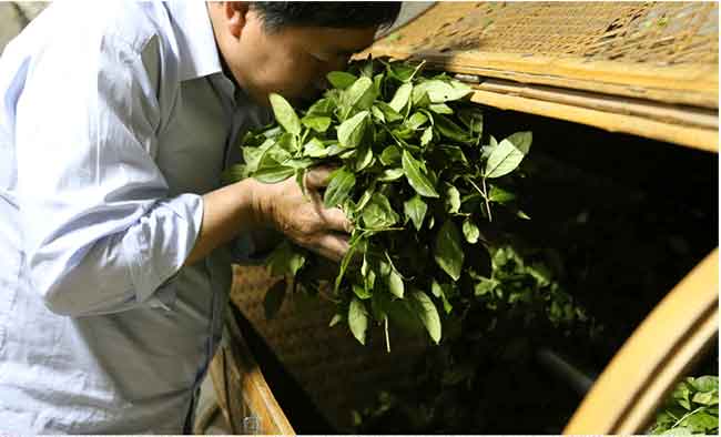 按照化學(xué)反應(yīng)來說,該工序有一個承上啟下的作用。承上是徹底破壞酶的活性,固化已形成的品質(zhì),啟下是散發(fā)部分水份便于后序工序的操作。同時還能促進(jìn)一系列的內(nèi)在變化,如可以減少青味、促使高沸點(diǎn)的芳香物質(zhì)的顯露,并使可溶性糖與果膠增加等等。
