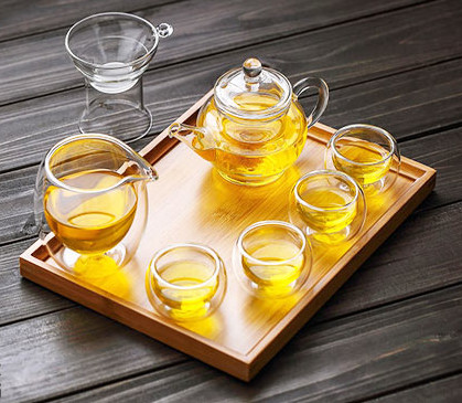 因此,用它制成的茶具,形態(tài)各異,用途廣泛,加之價(jià)格低廉,購買方便,而受到茶人好評(píng)。在眾多的玻璃茶具中,以玻璃茶杯最為常見,用它泡茶,茶湯的色澤,茶葉的姿色,以及茶葉在沖泡過程中的沈浮移動(dòng),都盡收眼底。
