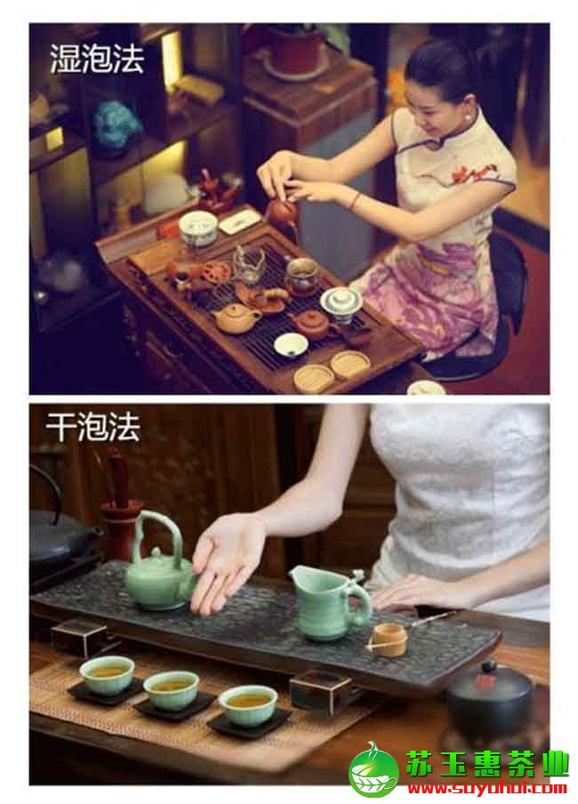 濕泡法用茶盤,泡茶時可以打濕茶盤。干泡法用的一般都是壺承,小而簡單便于攜帶,桌面要求保持干爽,收拾方便!