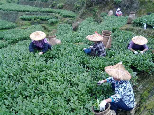 值得指出的是,一至三級(jí)的茶青因?yàn)槠焚|(zhì)較高,而且都是新樅,而新樅茶樹鮮葉稀疏,并且參差不平,沒有辦法使用機(jī)械采摘,這種鮮葉都是人工采摘的,一般一人一天可以采摘30~50斤鮮葉。